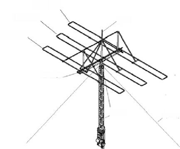 是一种小型化高效能的对数周期宽带天线,其采用三组环装折合单元按照特定的位置以 及布置结构进行交叉馈电,使其具备非频变特性,电性能基本相同,最后用宽带传输线变压器(阻抗匹配器) 进行全频段匹配,使其满足短波通信系统阻抗宽带需求。